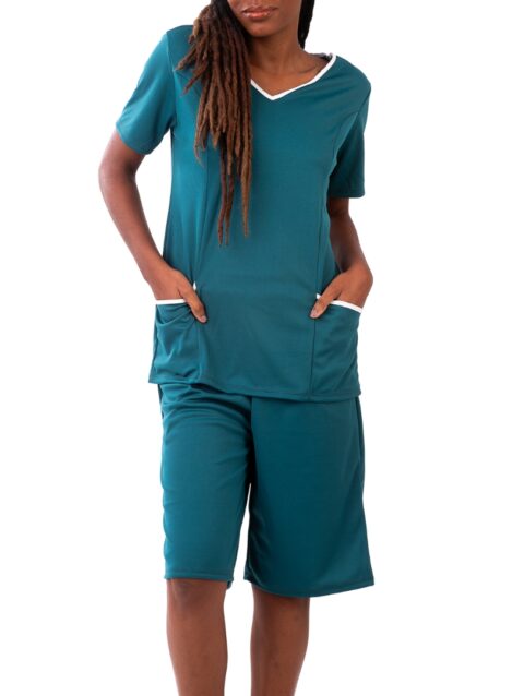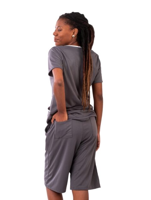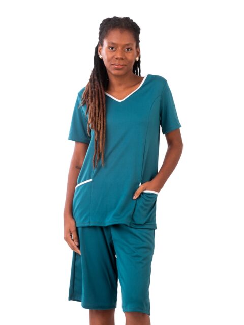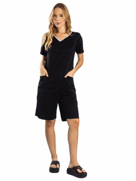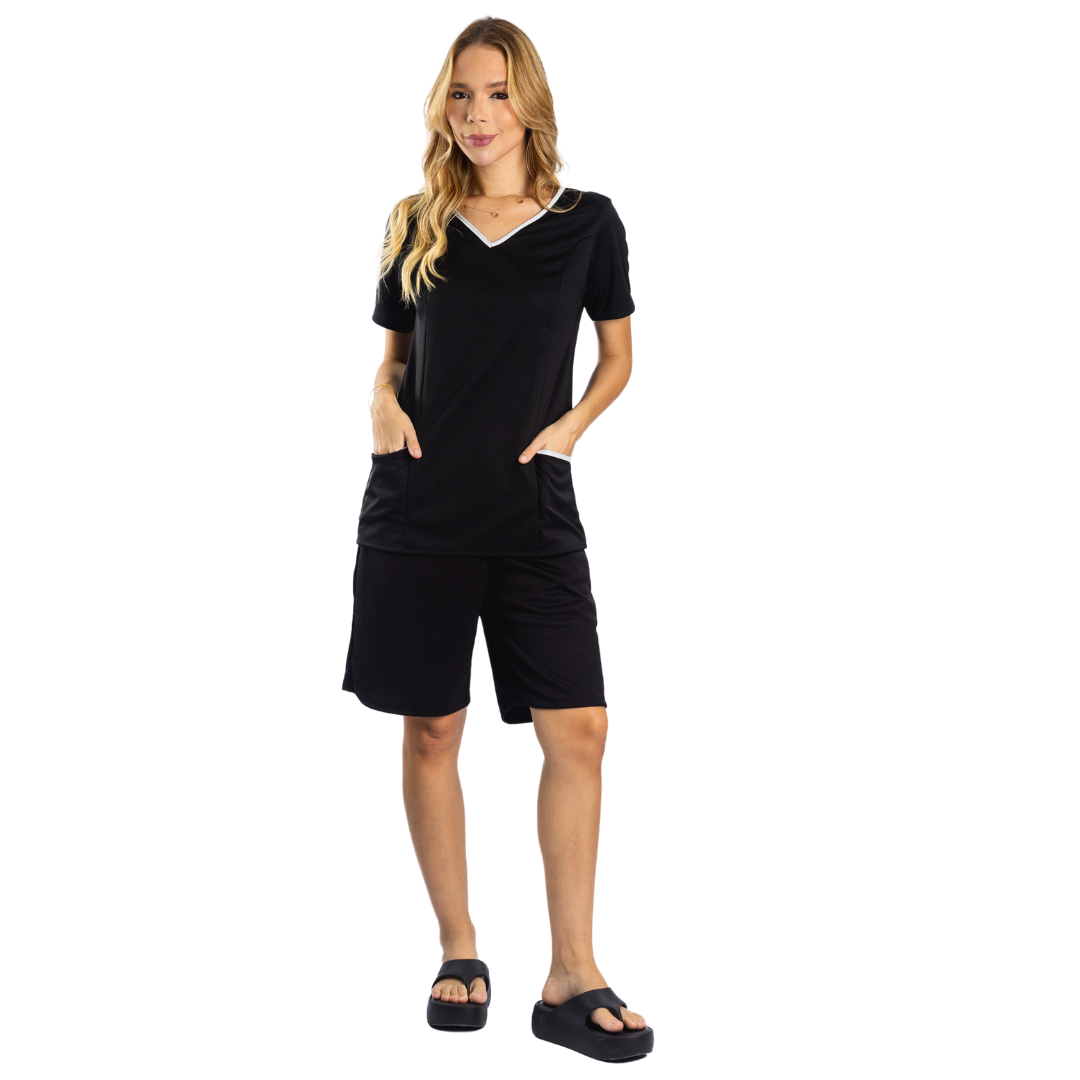 Conjunto de camiseta e bermuda para uniforme com bolso.