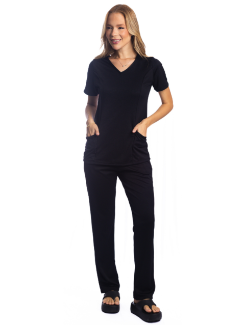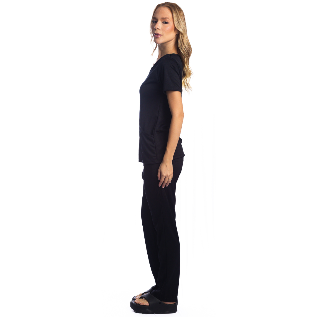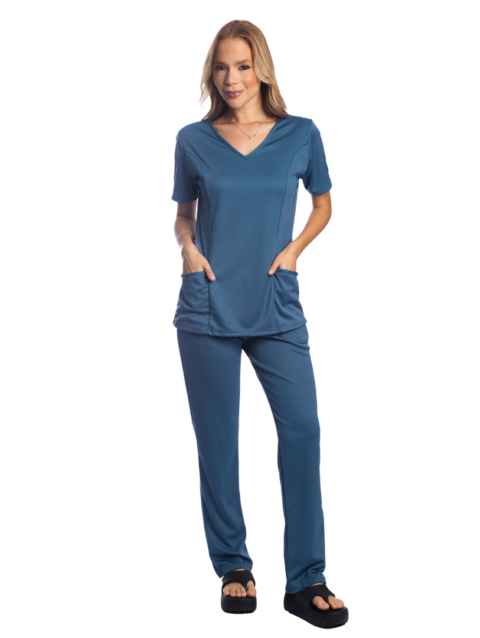 Conjunto de camiseta e calça para uniforme com bolso.