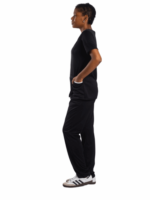 Conjunto de camiseta e calça para uniforme com bolso.